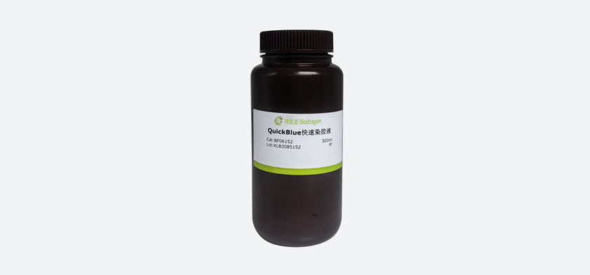 QuickBlue rapid gel staining solution is an environmentally friendly gel staining solution that can stain protein bands in gels and can replace the conventional Coomassie brilliant Blue staining solution.