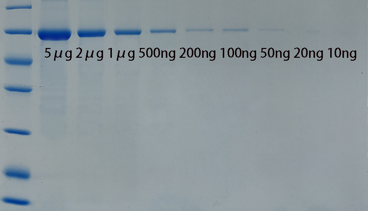 For gel staining experiments with extremely high sensitivity requirements, it is generally advisable to stain for 1 to 2 hours (which can produce bands with a protein content of 10ng), with a low background and no need for decolorization, allowing for direct observation or photography.