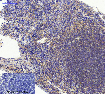 Immunohistochemical analysis of paraffin-embedded Mouse-spleen tissue. 1,Actin β Polyclonal Antibody was diluted at 1:200(4°C,overnight). 2, Sodium citrate pH 6.0 was used for antibody retrieval(>98°C,20min). 3,Secondary antibody was diluted at 1:200(room tempeRature, 30min). Negative control was used by secondary antibody only. |