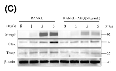 Aikeqing, a kidney- and spleen-tonifying compound Chinese medicine granule, prevented ovariectomy-induced bone loss in rats via the suppression of osteoclastogenesis. BIOMEDICINE & PHARMACOTHERAPY Xiao-Ling Shen WB Rat,Mouse left femurs bone marrow macrophages (BMMs) |