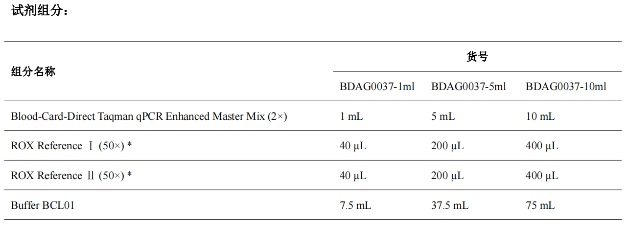 本产品可针对血卡或血斑样本,无需进行核酸提取,进行 Taqman Probe 法直接 qPCR 反应,用于进行 基因含量检测、转基因检测等分子生物学实验。