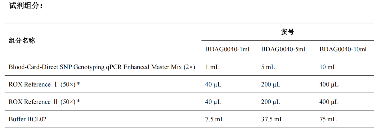 本产品可针对血卡或血斑样本,无需进行核酸提取,进行 Taqman Probe 法直接 qPCR 反应,用于 SNP 基因分型检测的专用试剂。