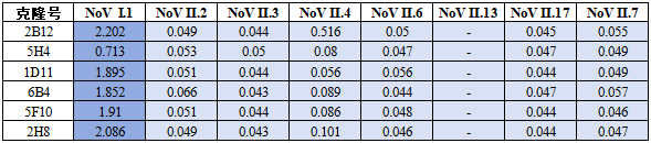 下表为Norwalk Viruses(NoV) I.1抗体的亚型等信息