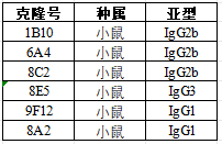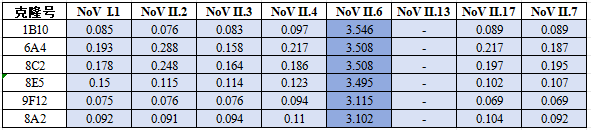 下表为Norwalk Viruses(NoV) Ⅱ.6抗体的亚型等信息