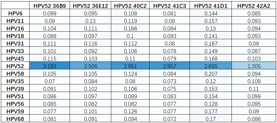 • Application 用于HPV 52-L1 蛋白的ELISA,筛选合适单抗以建立VLP 疫苗体外比活或含量测定方法